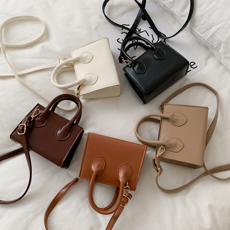 French inspired mini handbag. Available in the colors Black, White, Beige, Chocolate, and Caramel.